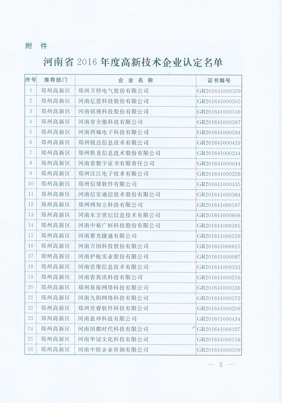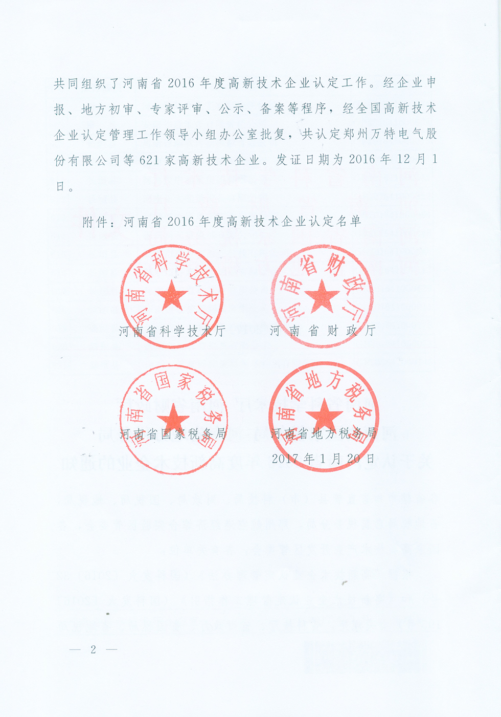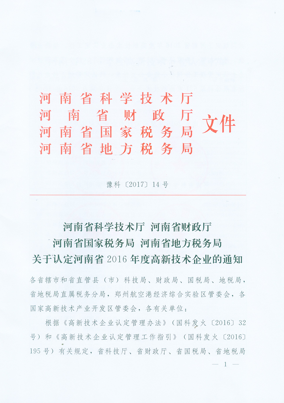 关于认定河南省2016年度高新技术企业的通知
