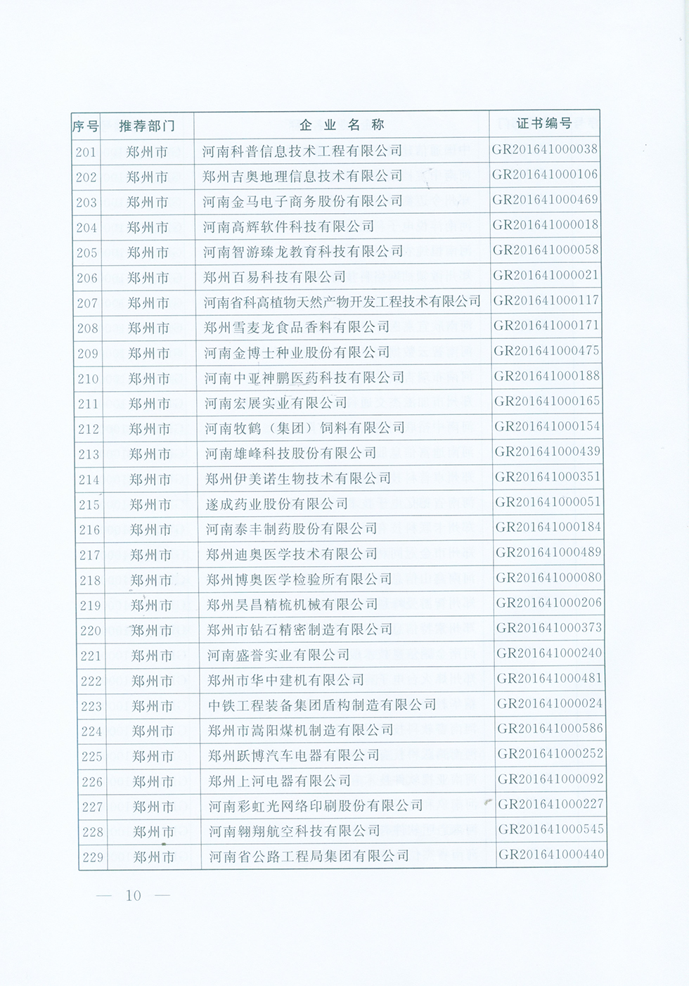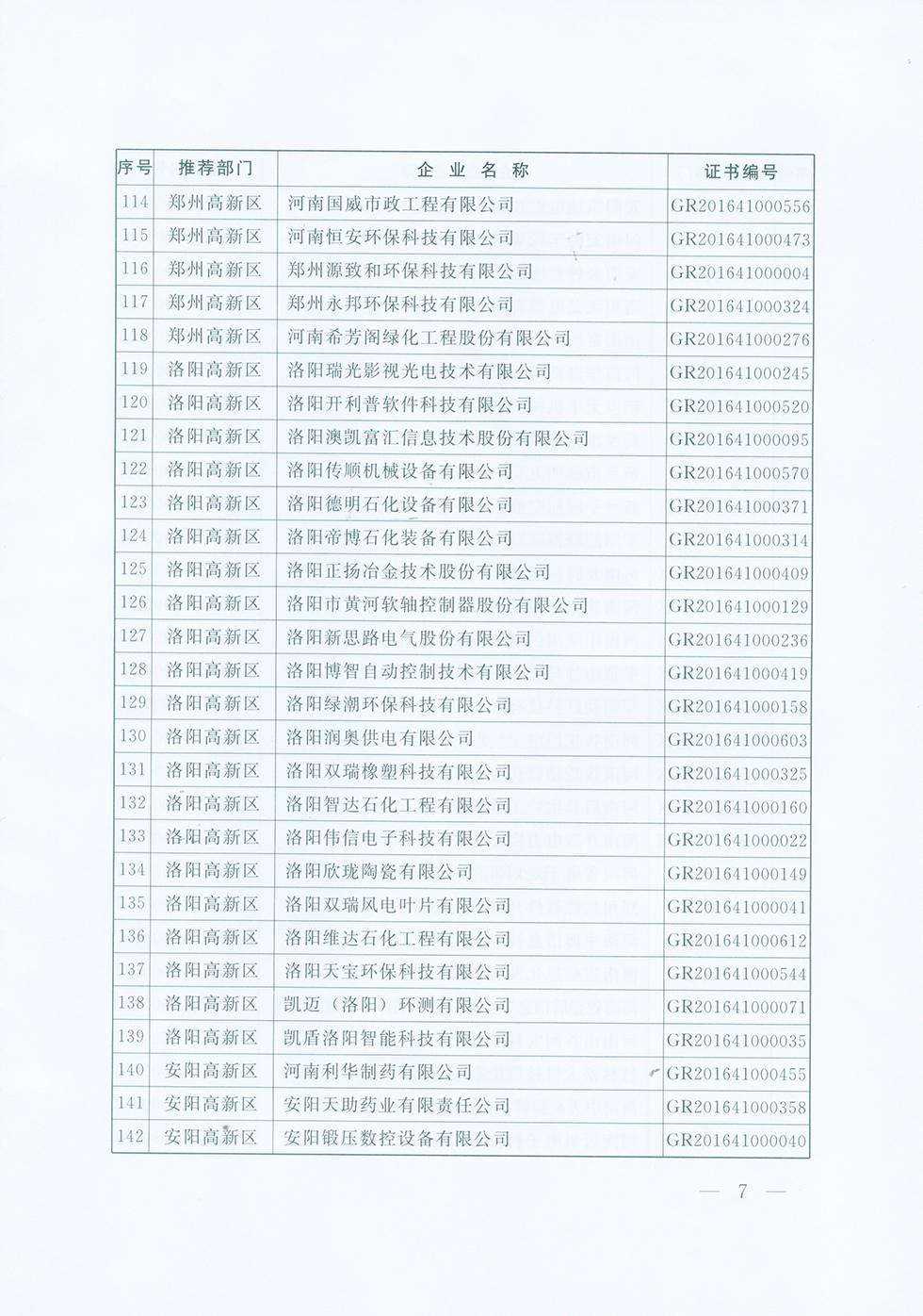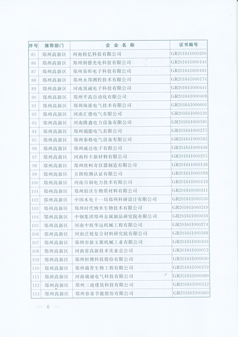 关于认定河南省2016年度高新技术企业的通知